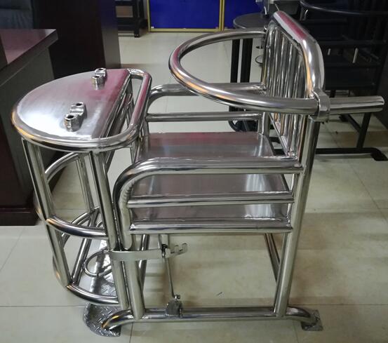 用途:本产品匀选用标号为国*标201优*质不锈钢材料,包括靠背、座面、椅腿、扶手及胸部约束环另外包括座椅前设有整体弧形开关装置。其桌面上方装有U型锁具,方便约束其手腕。椅腿下方装有直接与地面固定底盘。
