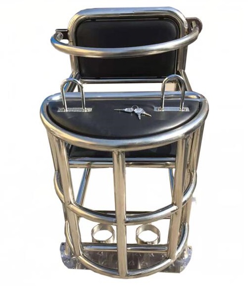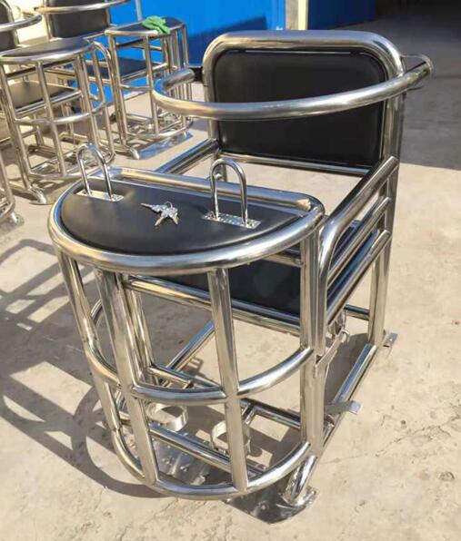 本产品匀选用标号为国*标201优*质不锈钢材料,包括靠背、座面、椅腿、扶手及胸部约束环另外包括座椅前设有整体弧形开关装置。其桌面上方装有U型锁具,方便约束其手腕。椅腿下方装有直接与地面固定底盘。