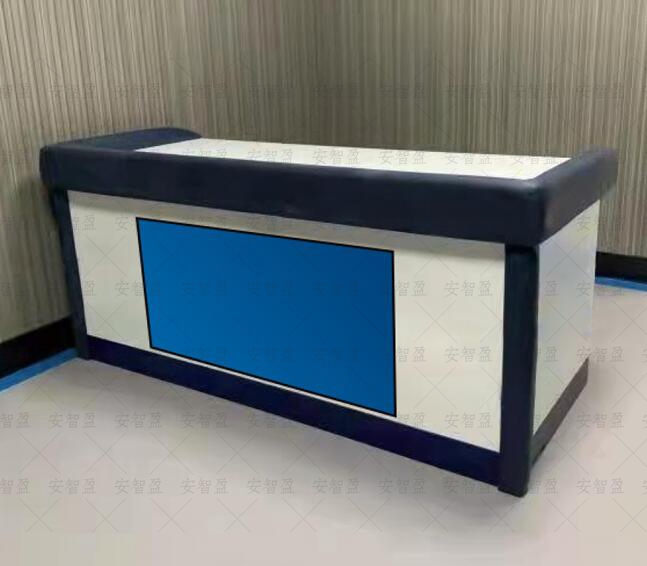 “安智盈”审讯桌是专门为审讯时审讯人员用的桌子,还叫做审问桌,AZY-SXZ-57型木质审讯桌与我们家里或办公用的桌子是不一样的,它主要以牢固为基础,采用实木或钢木结合,稳定性比较强,用于比较严肃的场合中。当然,它的使用寿命也是比较长的。多功能审讯桌有的用实木制作,有的可以钢木结合,还可以做成全软包型的,如AZY-SXZ-R12全软包审讯桌在制作时满足现代审讯室家具的要求,采用软包制作,以防撞击,设有加固筋和固定线槽桥架;软包皮质耐磨,预留300 mm做硬面处理供书写专用,制作比较特别,抽屉采用全隐藏式消声精密钢珠滑轨,周围有安全防护措施。有的款式桌子制作时还可以加显示器、小音响。