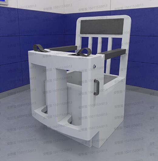 审讯椅负责协助完成每个审讯过程。因为不同的场合,设计与我们日常生活中使用的椅子不同。它基于人工科学的原理设计,这种椅子比较实用。"安智盈"审讯椅上设计了专用的翻转桌面,可以根据实际需要加装锁,可以有效防止审讯时的逃逸现象。