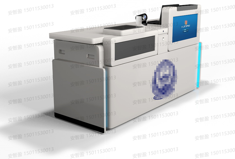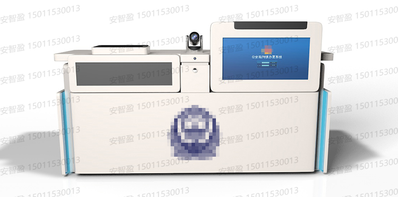4、①桌体正前方加装电脑显示器及显示屏,方便提示嫌疑人须知问题;印制蓝色jing徽,整体庄重不杂乱;