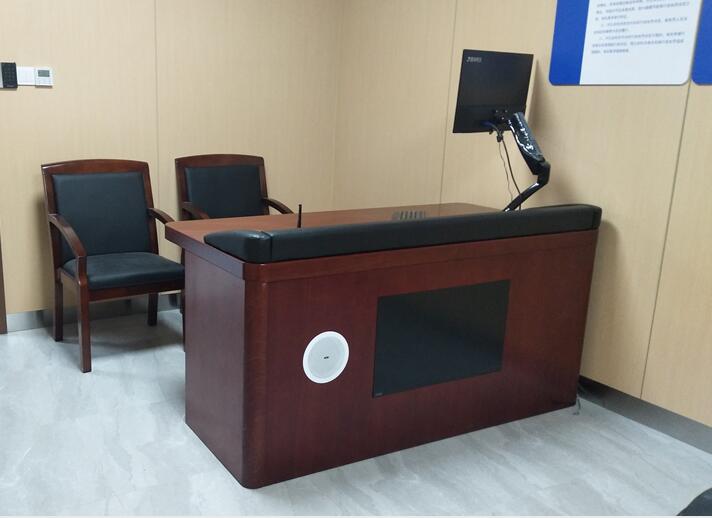 谈话桌在设计上大多秉承了长方形的设计,该有的桌子功能都具备,只不过在抗冲击、防撞、静电、阻燃、阻隔等方面有多增加,自然是为了应对不同的环境,不同的人专门设计的。抽屉里都准备fa律条文、判决an例、物证、以及所需要的纸、笔、印章等询问用具。