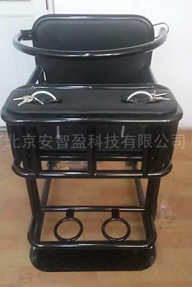 11.特性:无棱角更安全,手部采用优*质的U型锁,脚部为弹簧设计的锁扣,安全可靠,方便。可固定与地面上,安*全带设计更为人性化;座位处及锁手处面板为加厚钢板,锁具为钥匙型,钥匙通用(特制),椅子后部有弹簧开关,掰动开关脚部锁具自动打开,使用中无需配备其它任何锁具,靠背有胸带。