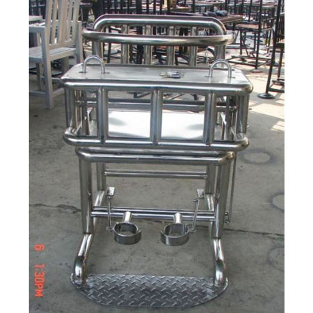 不锈钢制作,上部装有锁具,地上也可以固定,上部打开时需用钥匙,钥匙通用,下部不用钥匙,椅子旁边有开关,可打开脚部,操作简单。