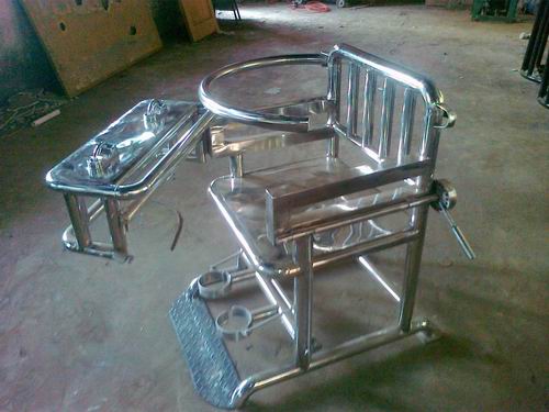 材质:管壁厚度为贴标2.0mm工业管,座面不锈钢板厚度为贴标1.8mm,桌面不锈钢板厚度为贴标1.8mm,扶手不锈钢管厚度为贴标2.5mm,伸缩腿管壁厚度为贴标1.8mm,脚部约束环采用5.0mm厚工业不锈钢板制成