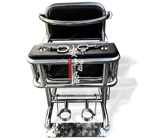 审讯椅桌面上方装有手kao,方便约束其手腕,下部为脚环装置。腰部有安*全杠,防止头部前倾。审讯椅选用国*标201优*质不锈钢材料,包括靠背、座面、椅腿、扶手。