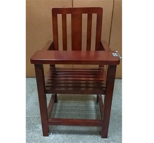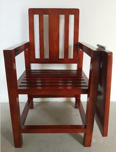 产品特点:木制审讯椅(仅木板下有一小锁),橡木制作(靠背上端两角及前方木板已改为圆角),脚部留有膨胀丝孔,可固定于地面,发货时多层包装,能保证an全到达,常有现货。