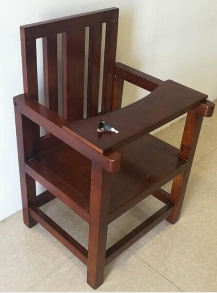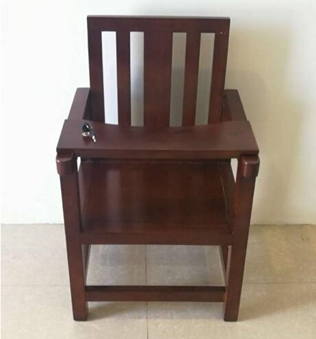 椅子采用实木支架,基材采用全实木,经高温沸煮及脱水达到定型后不开裂,不变形。面板油漆采用环保油漆,达到环保标准。审讯椅各棱角处为圆滑处理。可固定于地面。
