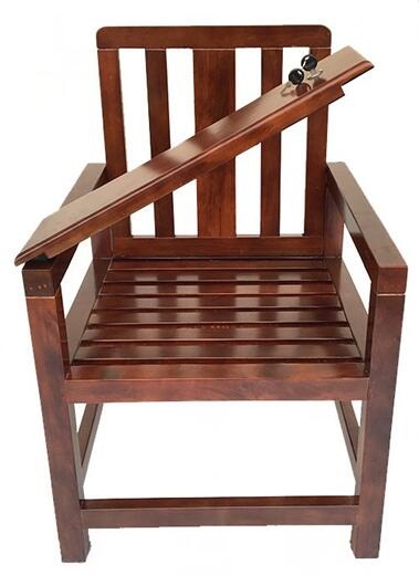 1.结构:讯问椅由座板、靠背、台板、扶手等组成。靠背、扶手、等相互连接牢固;台板一端通过铰链与扶手连接,另一端通过底部舌簧锁与另一扶手锁定,铰链转动灵活,无卡滞、锈蚀等现象;