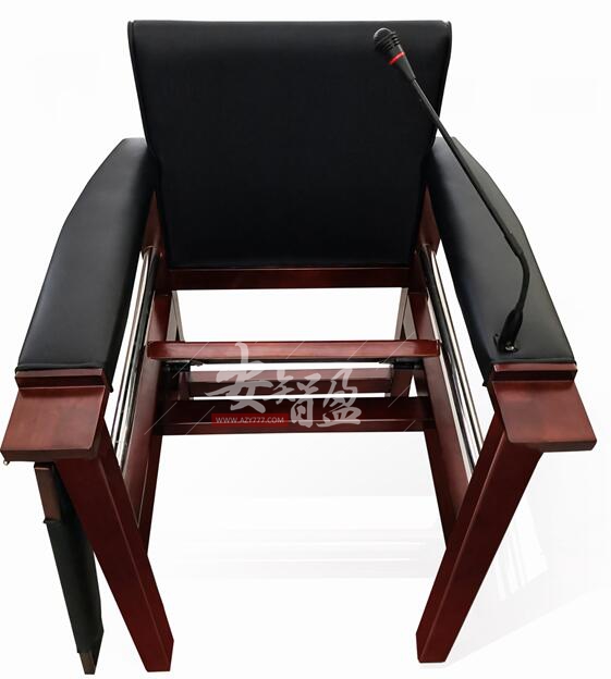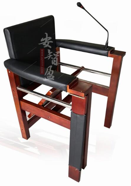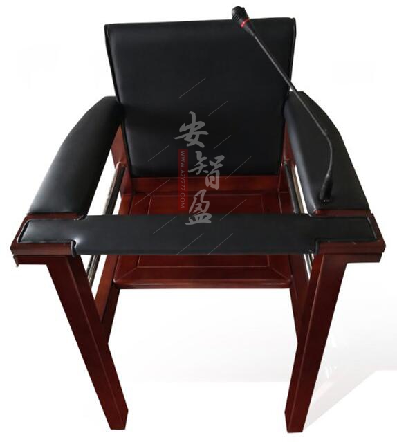 1.结构:讯问椅由座板、靠背、台板、扶手等组成。扶手处安装固定式的万向扩音设备。靠背、扶手、等相互连接牢固;台板一端通过铰链与扶手连接,另一端通过底部舌簧锁与另一扶手锁定,铰链转动灵活,无卡滞、锈蚀等现象;