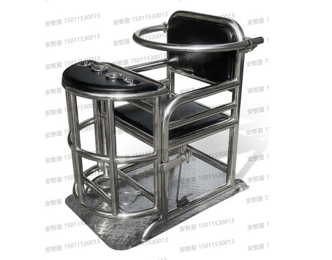 按动椅背胸带基座后方开关装置,也就是脚踩开关将桌面打开 打开胸带,嫌yi人入座后关上桌门,前方桌面可自然打开同时脚步约束环也随之打开,右手扳动椅背后方手柄,在重量相等的情况下桌门脚部约束环会同时锁住,然后将其链条移至桌面上方,专用锁具锁住,然后将xiong部约束带调节至适当位置锁住,整个操作过程在20秒内可以完成。