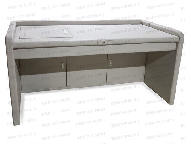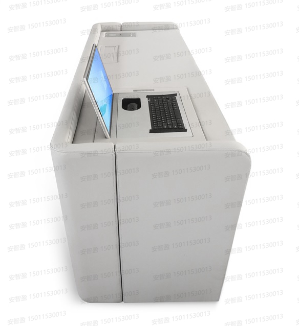 一体化审讯桌将审讯过程中需使用的多种审讯设备设置于桌体内部,升降式电脑使用时一键启动,自动延伸至桌面上,使用完毕后退回至桌面内部隐藏起来,保证了桌面的整洁有序同时也有效提高了审讯人员的工作效率。