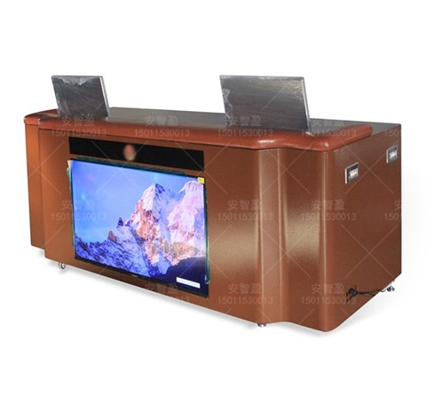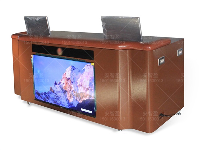 ③桌面配置电脑升降器;桌体正前方也可加装电脑显示器或液晶电视,方便提示嫌疑人须知问题;
