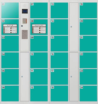 24门存包柜:整体尺寸:高1800×宽1700×460mm 单箱门:270×300×460mm