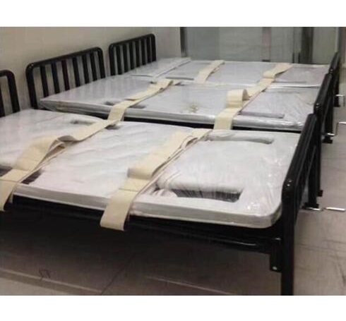 尺寸:90cm(宽)*200cm(长)*44cm高,床体采用1.2钢管制作,垫子采用人性化设计,约束带部分掏空设计,犯人躺上去既保证舒适度,也保证牢固程度,床垫可根据客户要求是否需要添加,床体四角可安*全固定于地面,可根据要求定制尺寸和材料,此款也可做不锈钢材质。