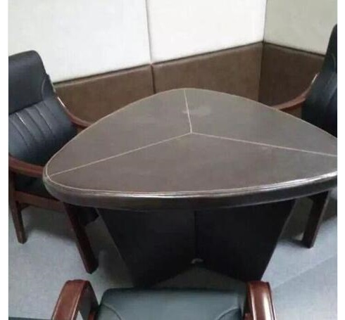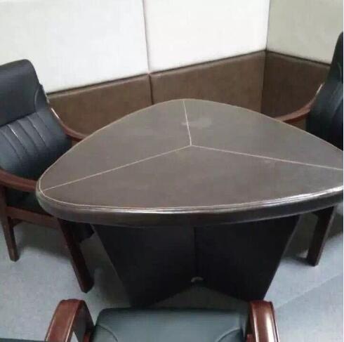 软包三角谈话桌,采用E1级中密度纤维板,经高温防潮,防腐,防虫处理。地区气候不同保证不变形。