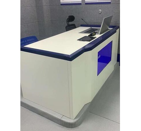 桌子上面可安装电脑、摄像头,桌子前面可加显示器、徽章、射灯。