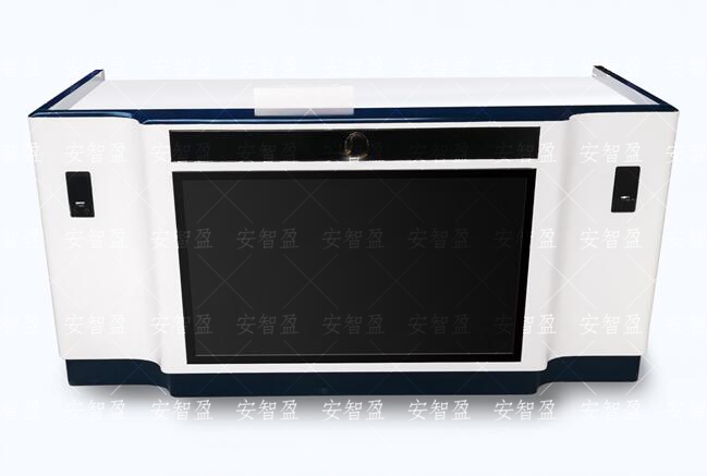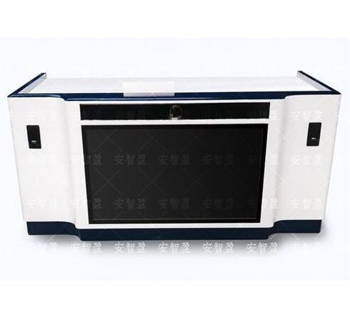 此款桌子为木质,尺寸:1800mm*800mm*750mm;桌子上面可安装电脑、摄像头,桌子前面可加显示器、徽章、射灯等。产品具有防盗、防尘、保持桌面整齐、美化桌面等效果。