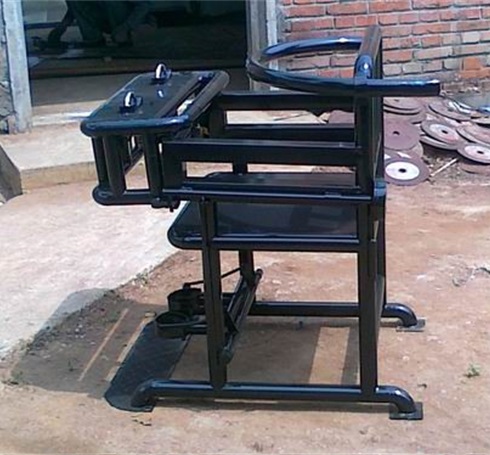 操作:右手扳动椅背后方手柄,前方桌面可自然打开同时脚步约束环也随之打开,然后按动椅背胸带基座后方开关装置,打开胸带,罪犯入座后关上桌门,扳动后方手柄,桌门脚部约束环会同时锁住,然后将其手kao链条移至桌面上方,专用锁具锁住,然后将胸部约束带调节至适当位置锁住,整个操作过程在20秒内可以完成。