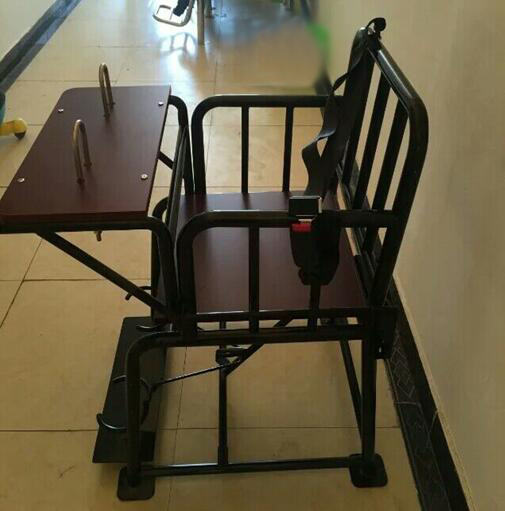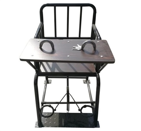 产品的材料匀选用国*家标准优*质钢材,经过多层筛选,对钢材柔韧度、强度、硬度进行多次实验,通过机械多次试拉试压,选出质量好的材料为原料;再经过有无沙眼、管壁厚度均匀情况检查,才可以做为加工用料。此审讯椅加工过程复杂,有多道工艺。采用全缝焊接,坚固耐用,喷沙过程采用粗沙细沙分次喷洗,对内壁也有一定的处理作用,酸洗工序采用现用的新颖配方,无毒无害,不留酸,喷塑工艺处理,全部采标准粉,绿色环保,加热温度适当,表面颗粒控制在百盎司之内,表面光滑,不生锈,不脱落。