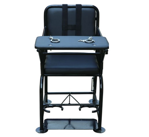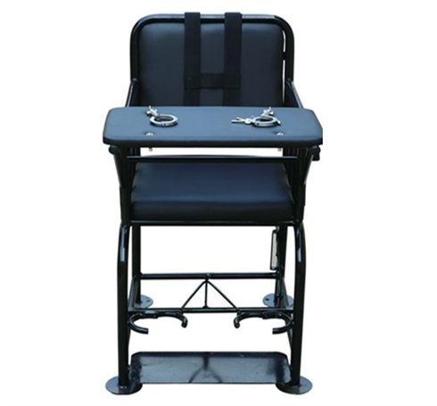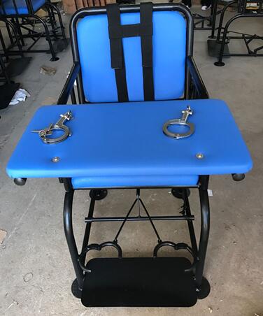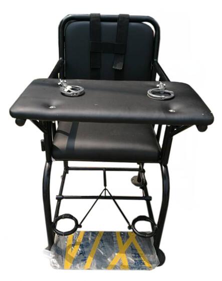 此椅带有背带,可以头套进去,肩膀约束带,腰带,防止逃脱