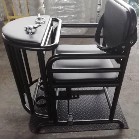 xiong部有约束带固定,可根据人的体型选择合适档位,然后把xiong部固定带关至适合档位,打开桌面把犯罪嫌疑人手腕放至手kao内固定。