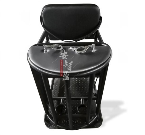 11.操作方法:轻踩左下方的小踏板,桌框门自动弹开将犯罪嫌疑人关至本器械,关上弧形桌框门就可以将犯罪嫌疑人脚部约束,