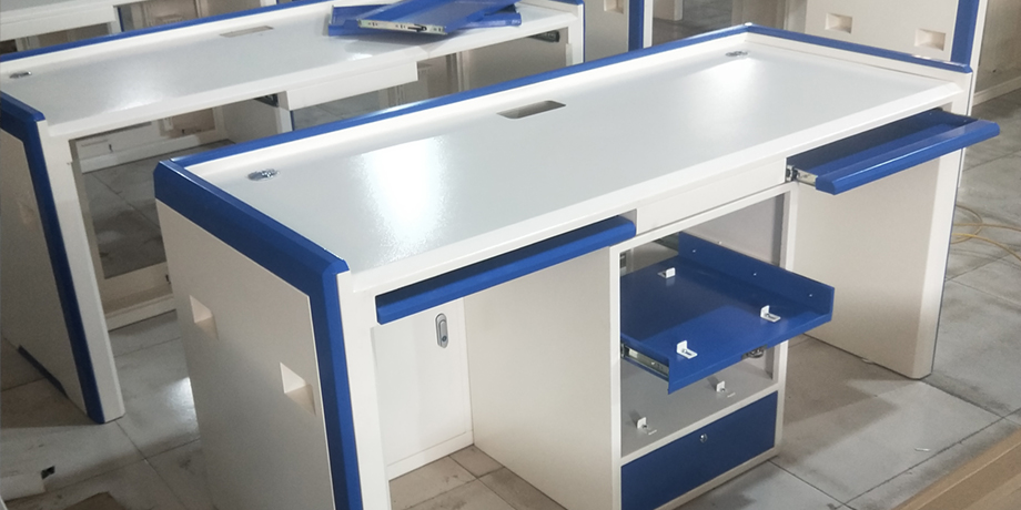 桌子上面可安装电脑、摄像头,桌子前面可加显示器、徽章、射灯
